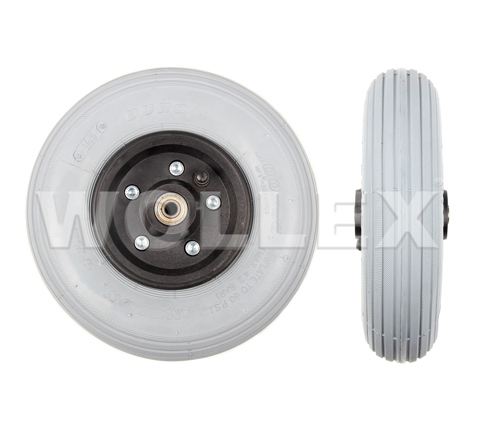 ÜRÜN TANIMI: 200X50 AKÜLÜ TEKERLEKLİ SANDALYE JANTLI HAVALI ÖN TEKERİ
